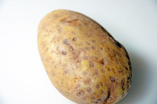 This is a potato, a vegetable that grows underground. Although brown on the outside, nuclear physicists discovered it's actually white on the inside.